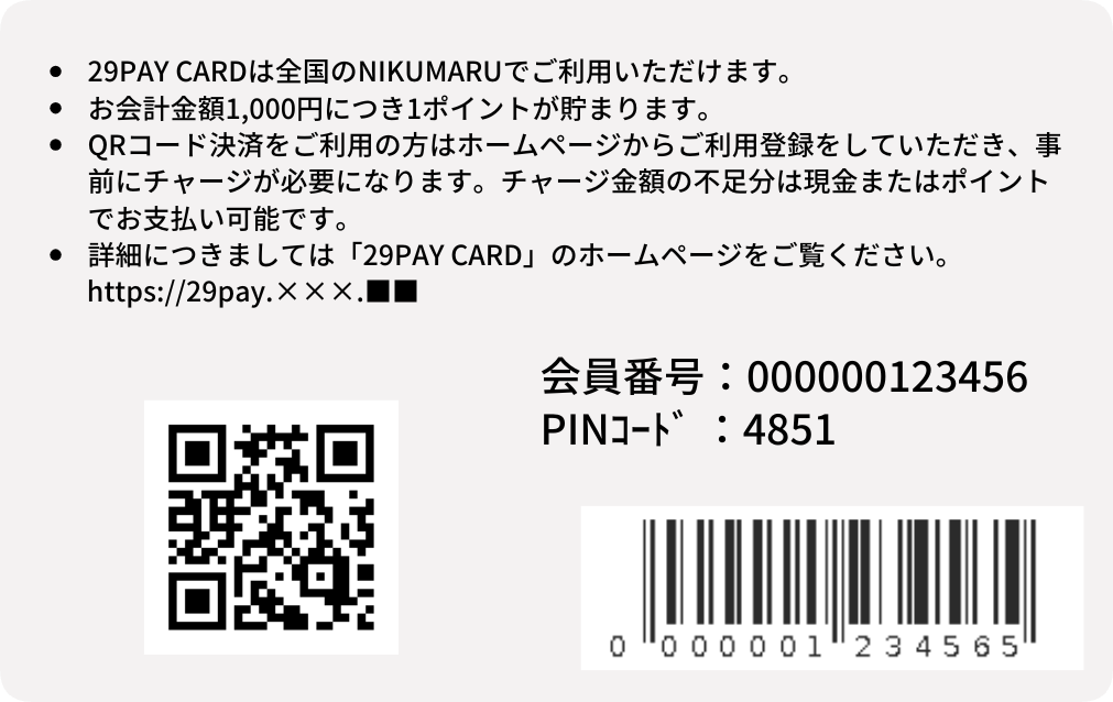 - 会員番号・通し番号(ナンバリング) : 001から順に連番を振るだけでなく、任意の番号体系(会員ID・社員コードなど)を割り当てることもできます。ポイントカード・会員証・イベントパスなど、個別識別が必要なカード全般に対応できます。
